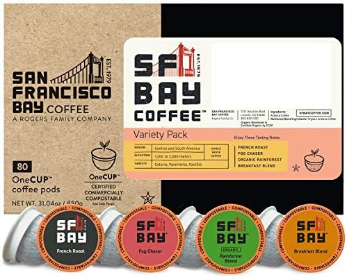 1.1 sf bay coffee onecup french roast/dark roast 80 ct compostable coffee pods, k cup compatible including keurig 2.0.